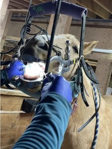 Our horses, ponies, and donkey just had their teeth floated! During a dental float, the vet carefully examines their mouths, smooths out sharp edges, levels uneven teeth, and addresses any issues. This visit even included one extraction.