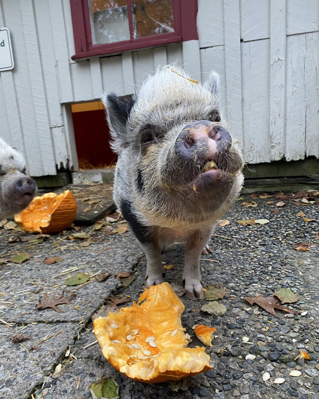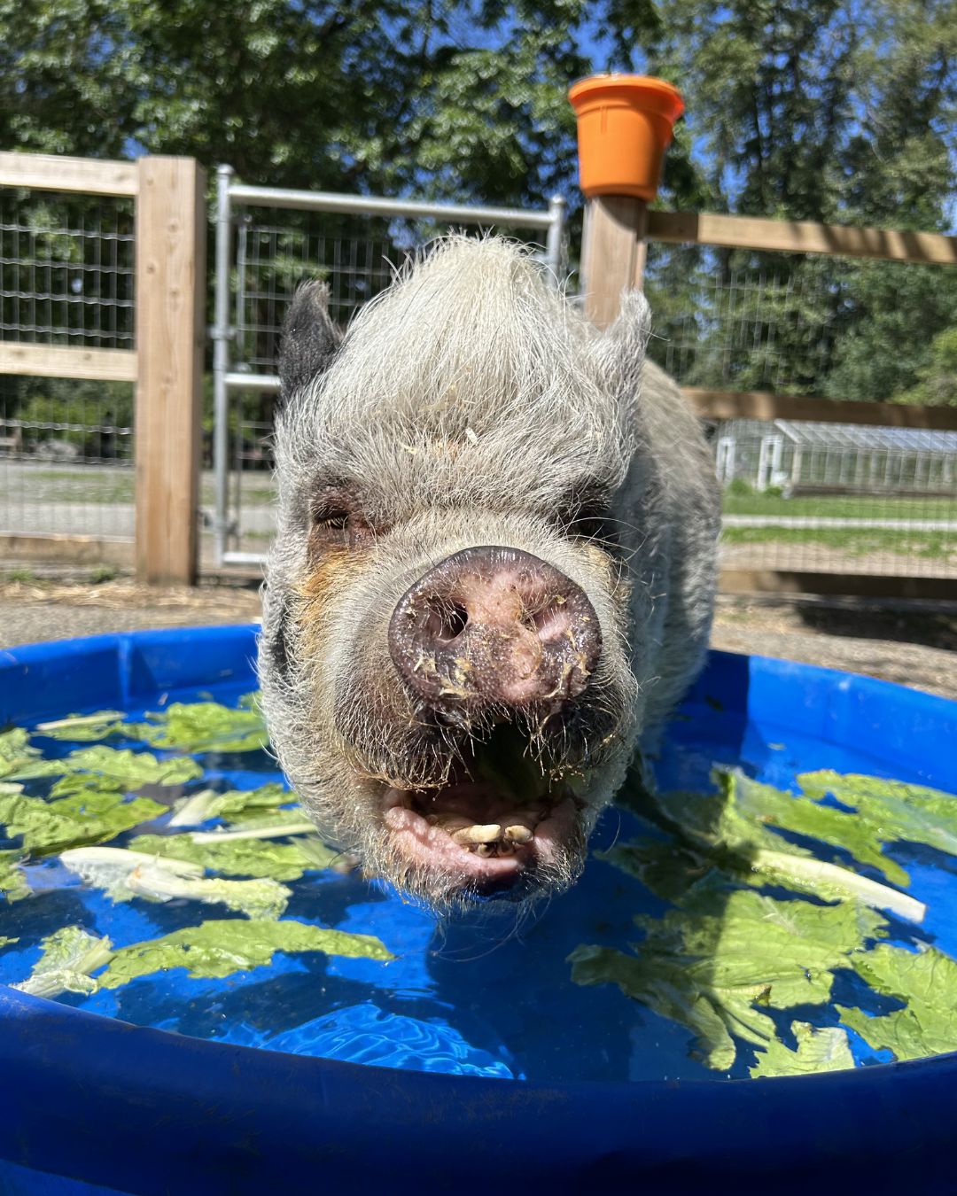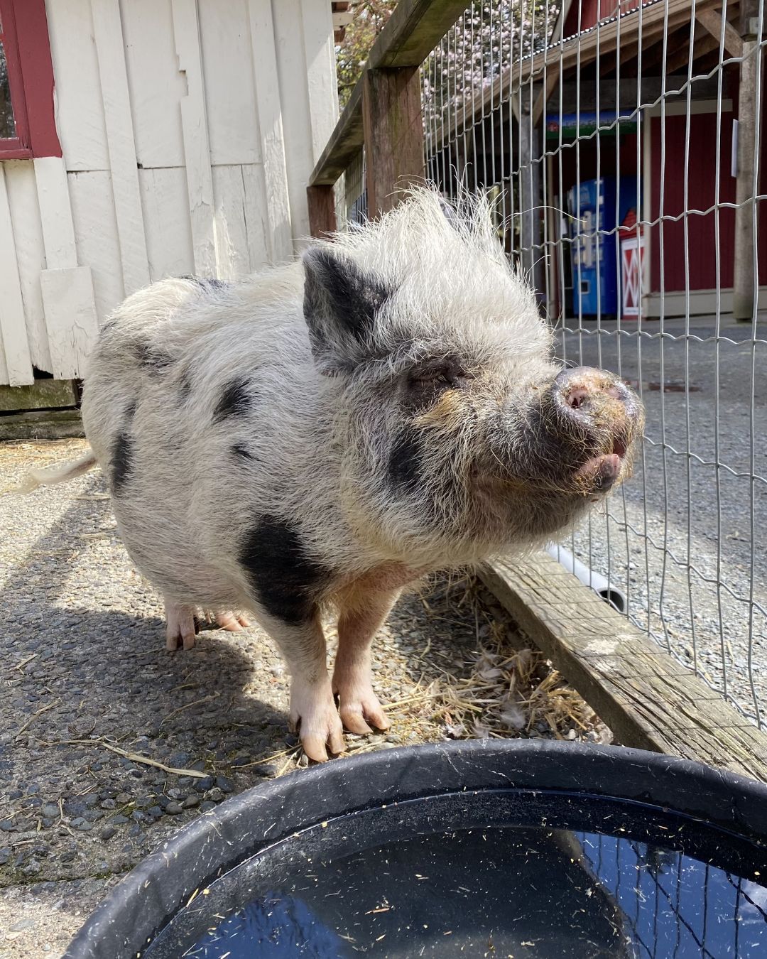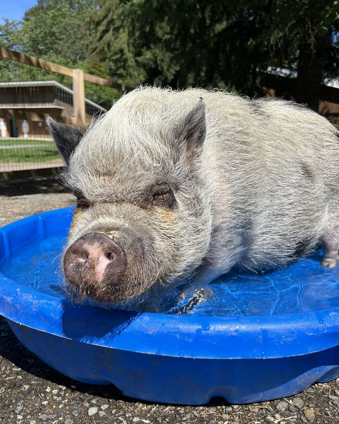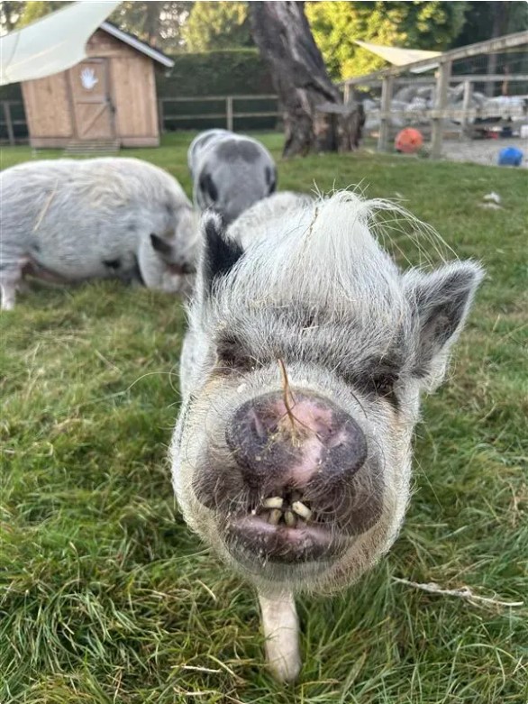 Rosie was estimated to be around 10–13 years old and was one of three pigs living here at the farm. Her sister, Petal, sadly passed away a few years ago due to ovarian cancer, which is unfortunately very common in female pigs as they age.